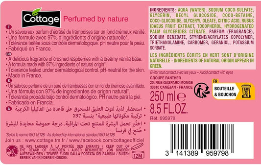 Cottage Fuktgivande mjölkdusch - hallonkräm - 97% ingredienser av naturligt ursprung - tillverkad i Frankrike 250 ml