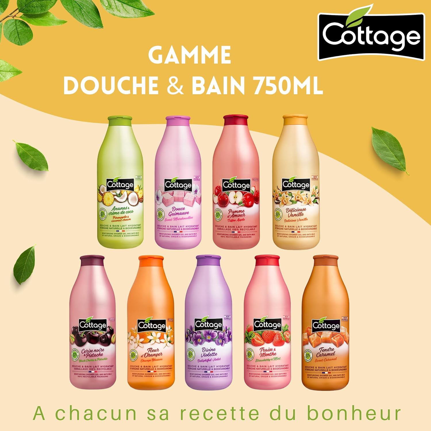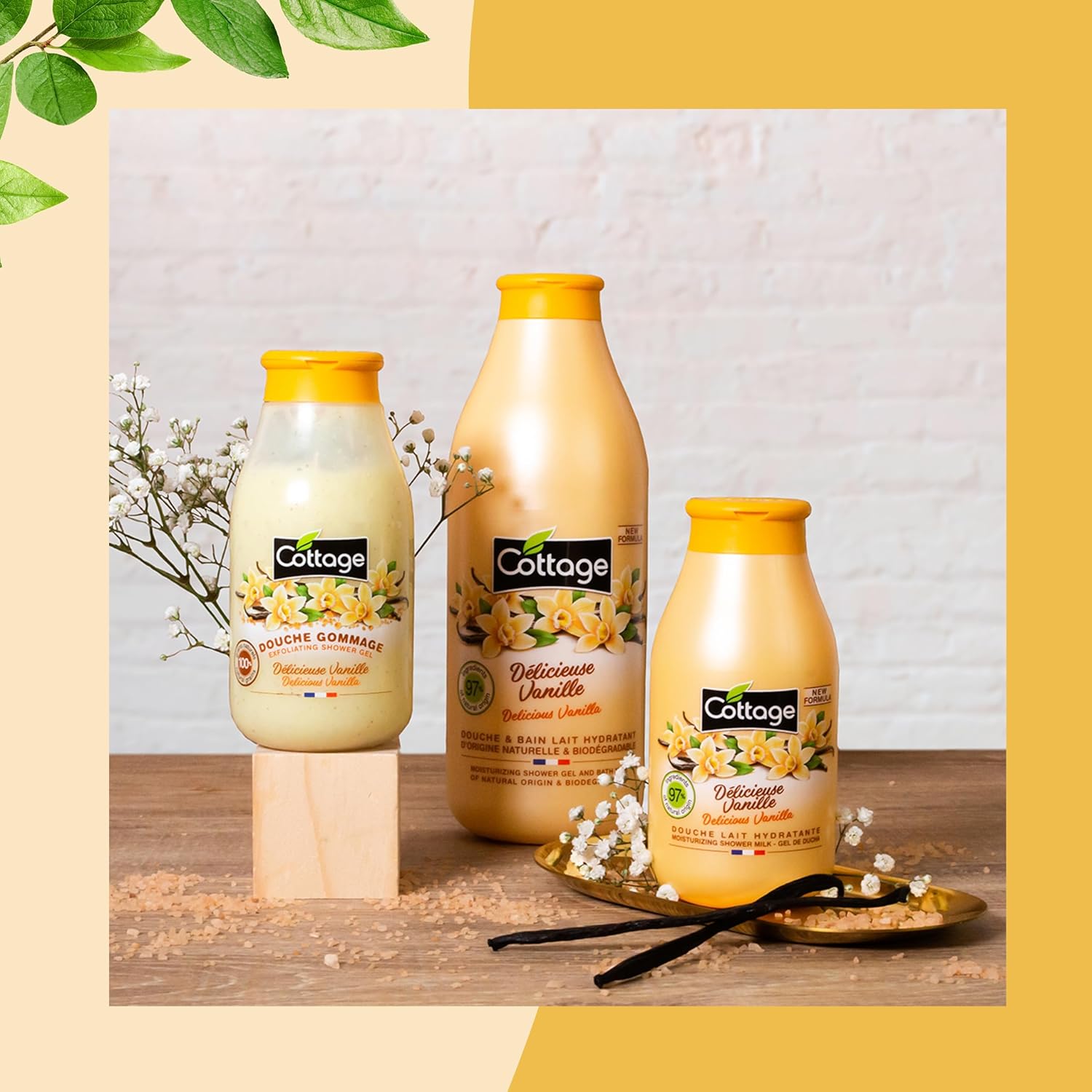 - En formel av naturligt ursprung*: Shower & Bath Milk Cottage med 97% ingredienser av naturligt ursprung* ger din hud alla kvaliteterna av en mjölkdusch och ett skumbad kombinerat i en enda familjeprodukt på 750 ml
