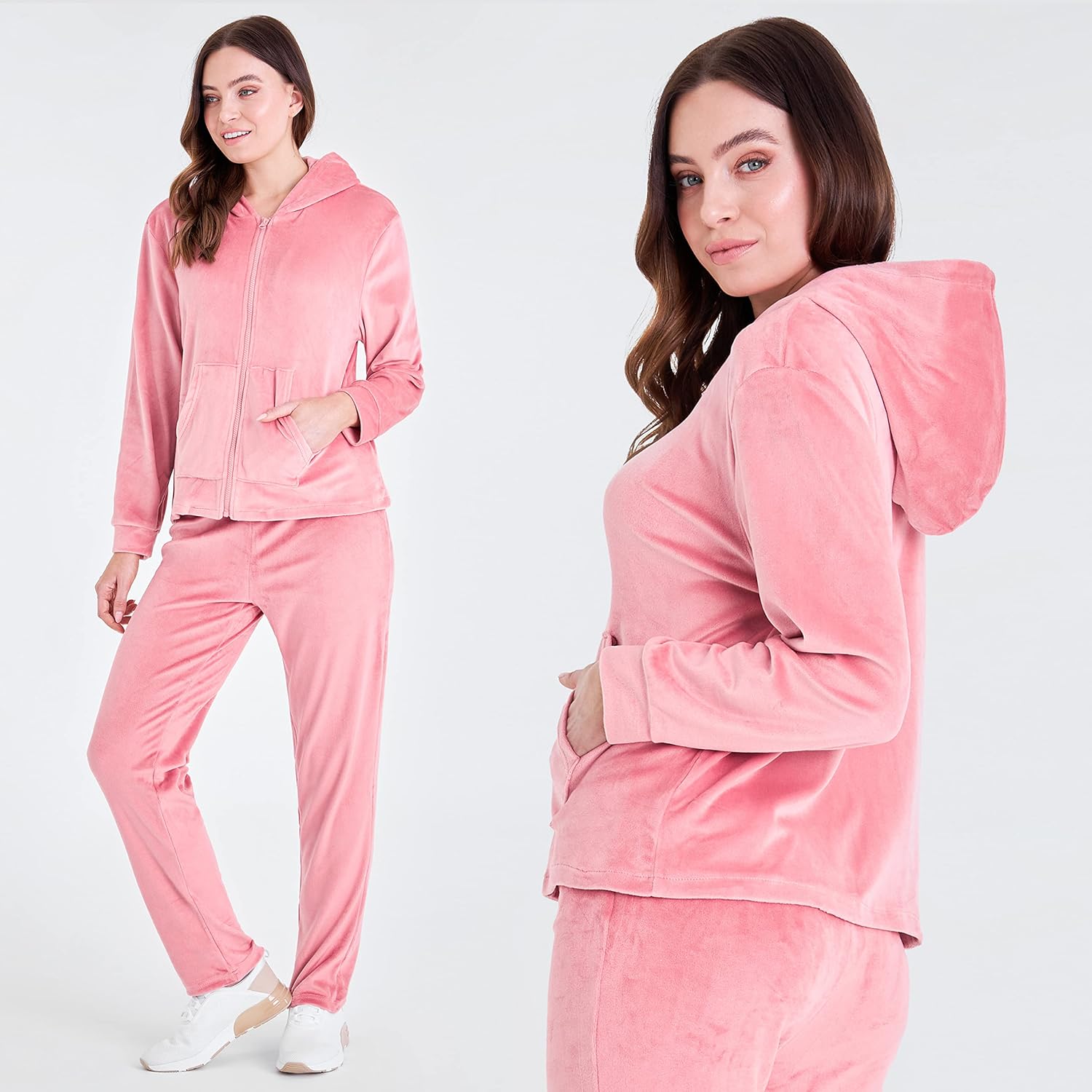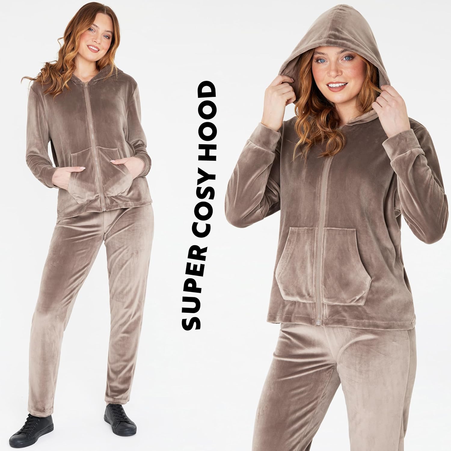Upplev komfort som ingen annan med den sammetslena mjukheten i dessa träningsoverall för damer, finns i en rad eleganta nyanser. Dessa träningsoveraller för kvinnor är tillverkade med sammetslena mjukt velourmaterial som är mjukt och har en mysig huva, långa byxor och långa manschetter. De är utformade för att hålla dig mysig. Uppgradera din komfort, detta snygga lounge-set är den perfekta uniformen för arbete hemifrån och är idealisk för att springa ärenden eller mysa under en filmkväll. Se bilder för fler funktioner och detaljer.