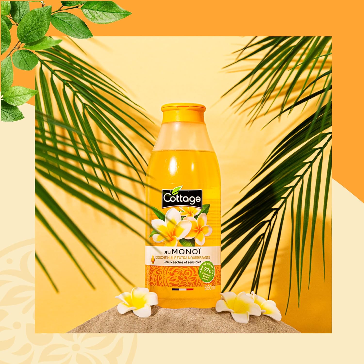 Cottage Duscholja extra närande med Monoi, torr och känslig hud, 97% naturliga ingredienser 560 ml