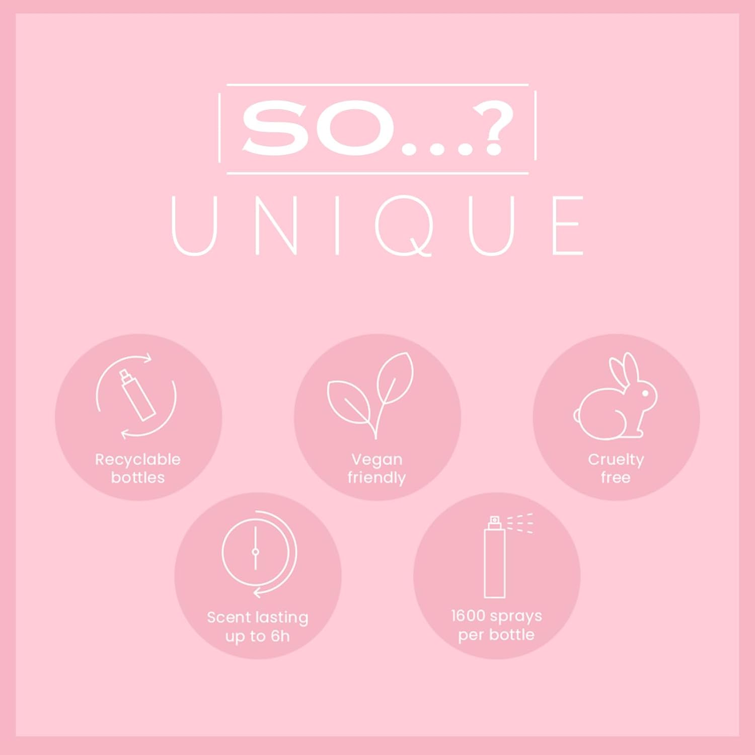 - VEGAN, CRUELTY FREE & RECYCLABLE - SO…? Unique Womens Vegan Body Mist Fragrance Spray 150 ml is vegan, cruelty free & comes with in a recyclable plastic (PET) bottle